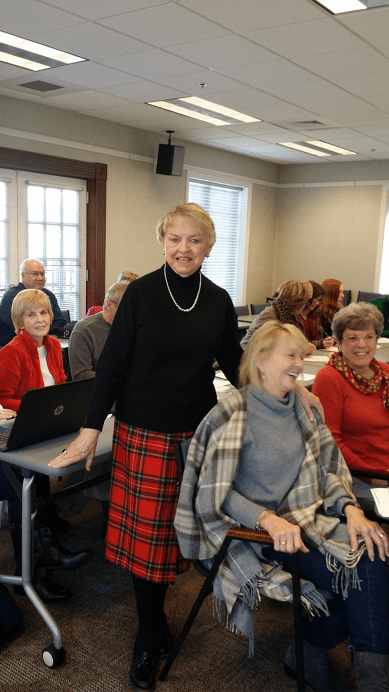 Dorothy teaching a class in genealogy at local library.
